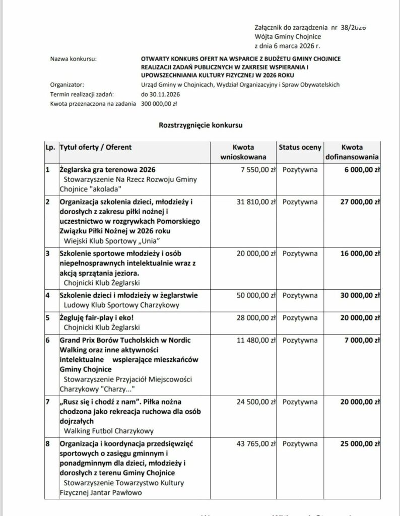 Z radością dzielimy się z Wami świetną wiadomością! Nasze stowarzyszenie Walking Futbol Charzykowy otrzymało oficjalne wsparcie z budżetu Gminy Chojnice na rok 2026.